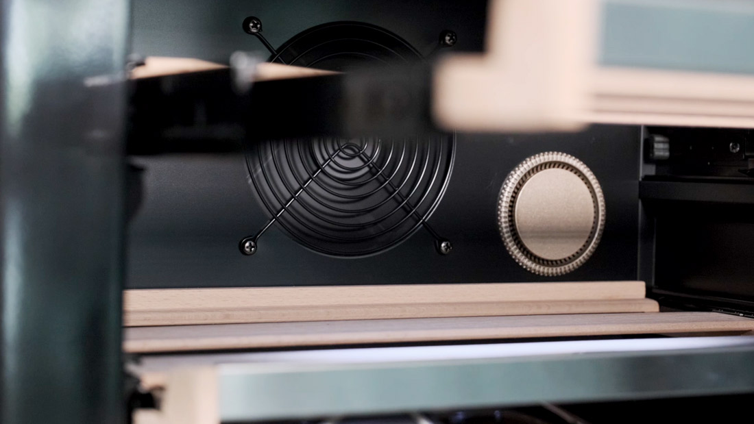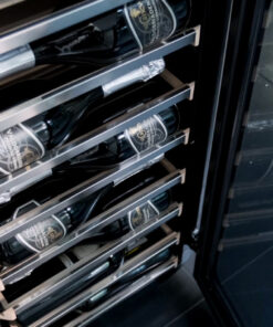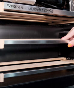 Gli 8 ripiani in legno di faggio sono estraibili per permettere l’inserimento di bottiglie di qualsiasi dimensione con una disposizione show che permetterà di averle sempre a vista.